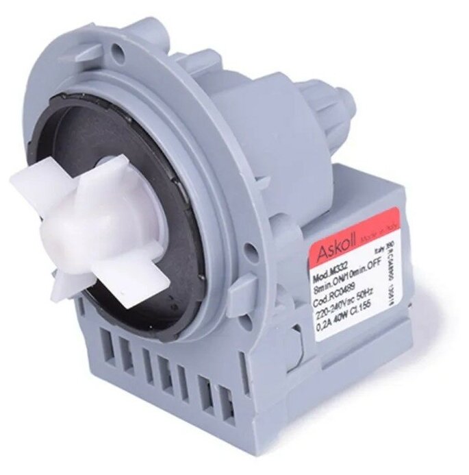 Сливной насос стиральной машины универсальный Askoll 40Вт (3 винта, клеммы назад) M332