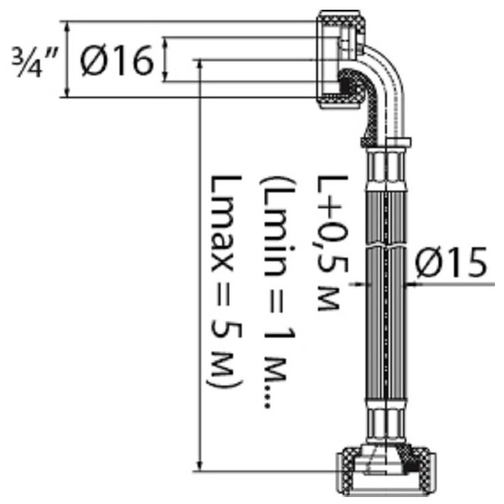 Наливной шланг для стиральной машины VIRPlast, угловой, 4 м, гайка-гайка