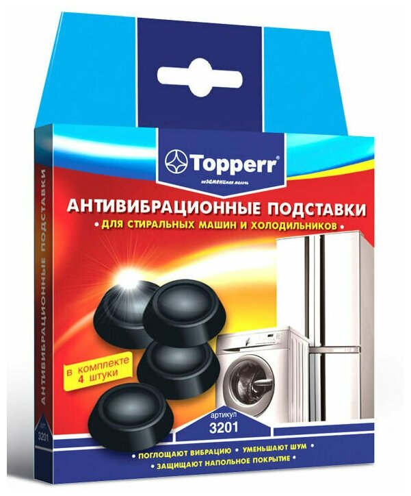 Аксессуар для стиральных машин Topperr 3201 антивибрационные подставки черные (4шт)