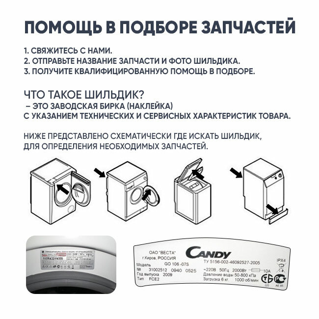 | Совместимость | Для точной проверки совместимости потребуется E-nr номер с сервисной наклейки / которую вы найдете на внутренней стороне люка |