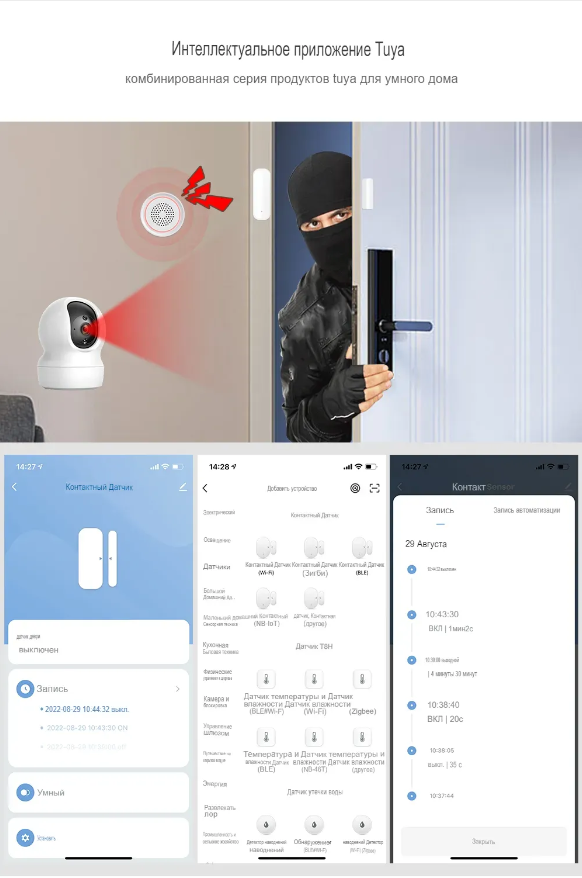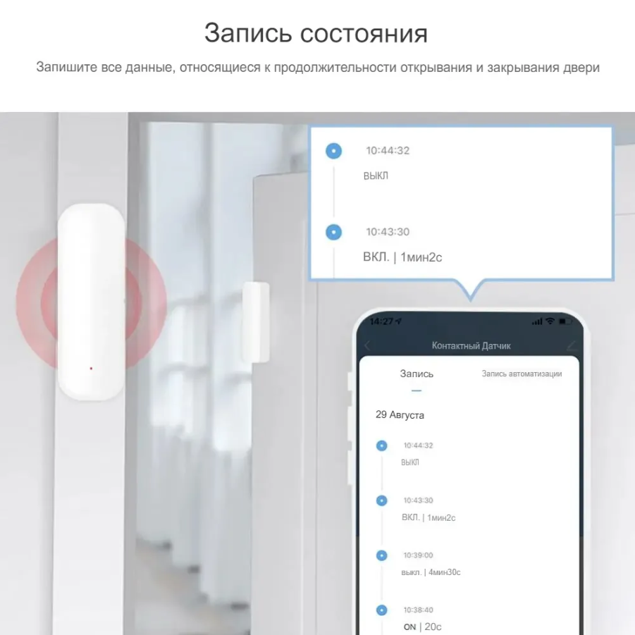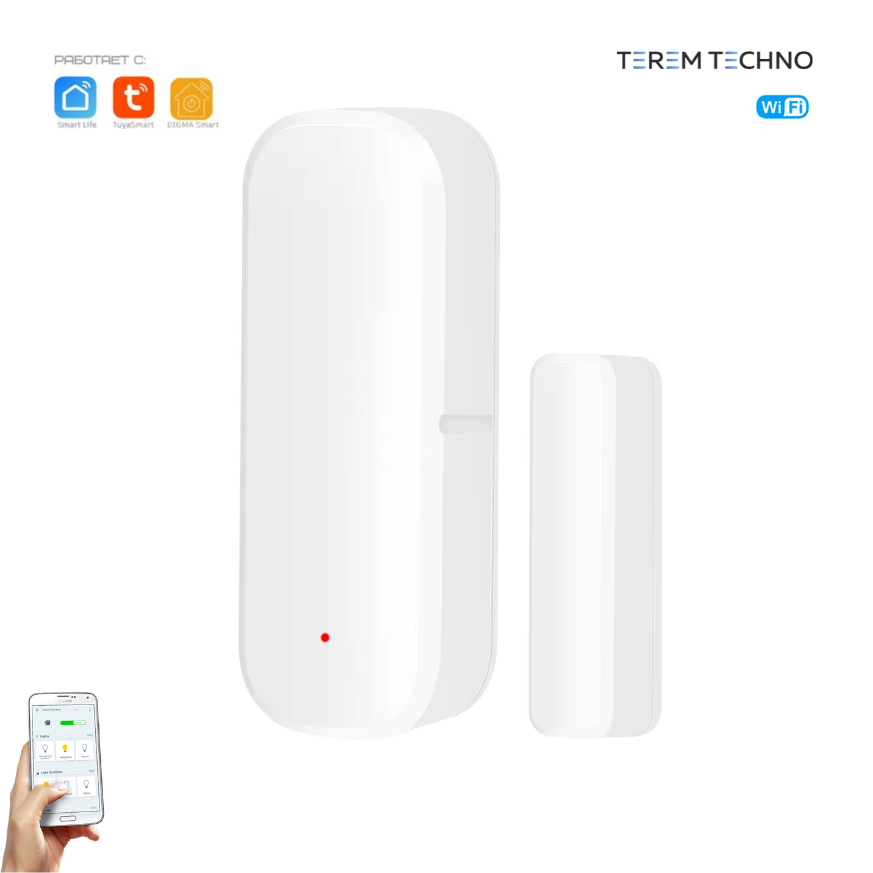 Беспроводной датчик на открывание двери / окна Wi-Fi Tuya для умного дома округлый с дистанционным управлением белый интересное: