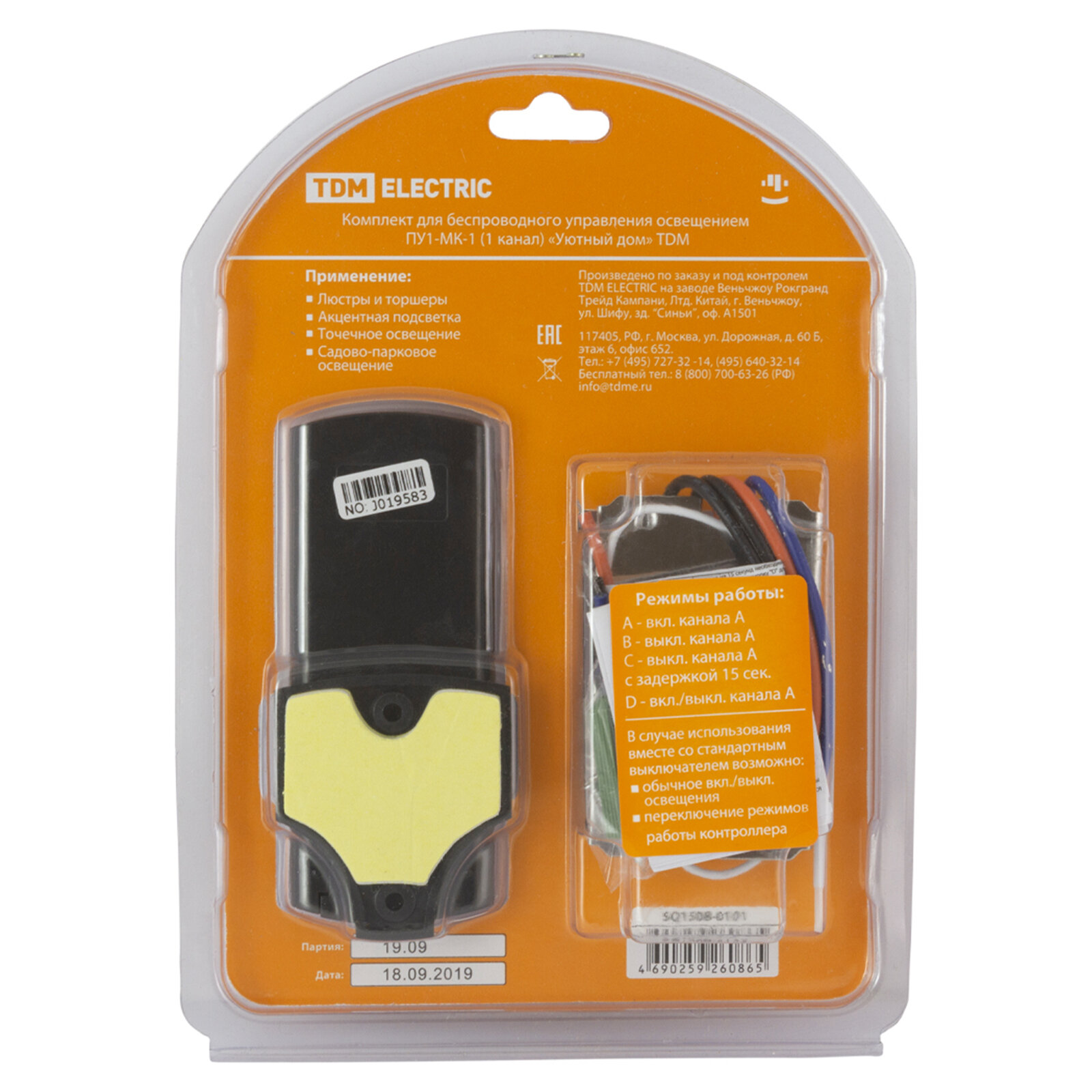 Комплект для беспроводного управления освещением ПУ1-МK-1 (1 канал) "Уютный дом" TDM SQ1508-0101 (1 шт.) интересное: