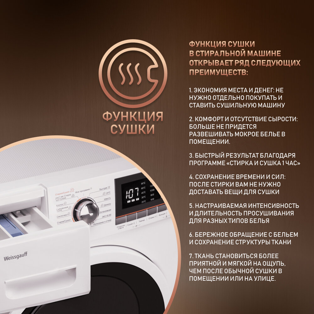 СохранитьСтиральная машина с сушкой Weissgauff WMD 4148 D интересное: