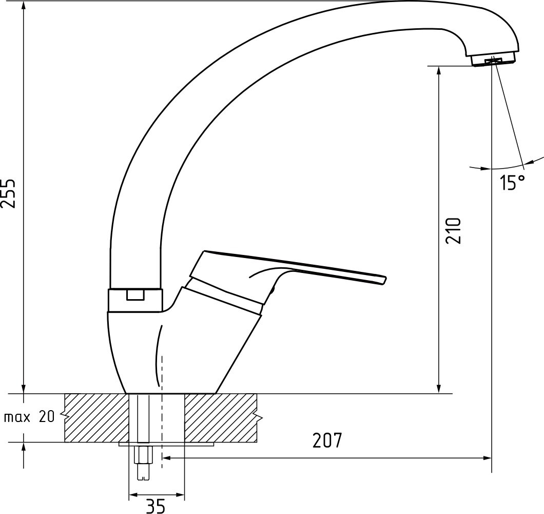 GRANFEST Смеситель для кухни боковой D-35мм топаз арт.