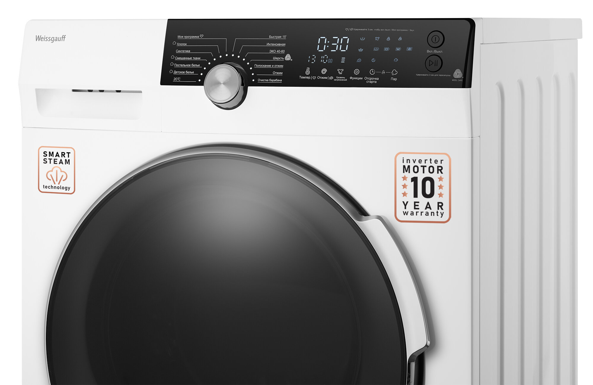 СохранитьСтиральная машина с инвертором и паром Weissgauff WM 59412 DC Inverter Steam интересное: