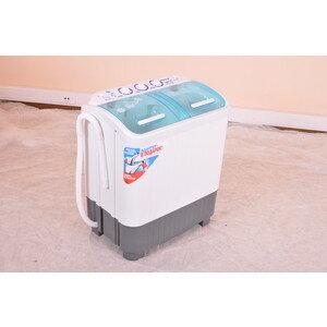 | Отзыв: | Отличный вариант для стирки на даче. Водопровода и канализации не требуется. Заливать можно через шланг или ведром. Стирает быстро. Есть режим замачивания. Очень хорошо отжимает. |
