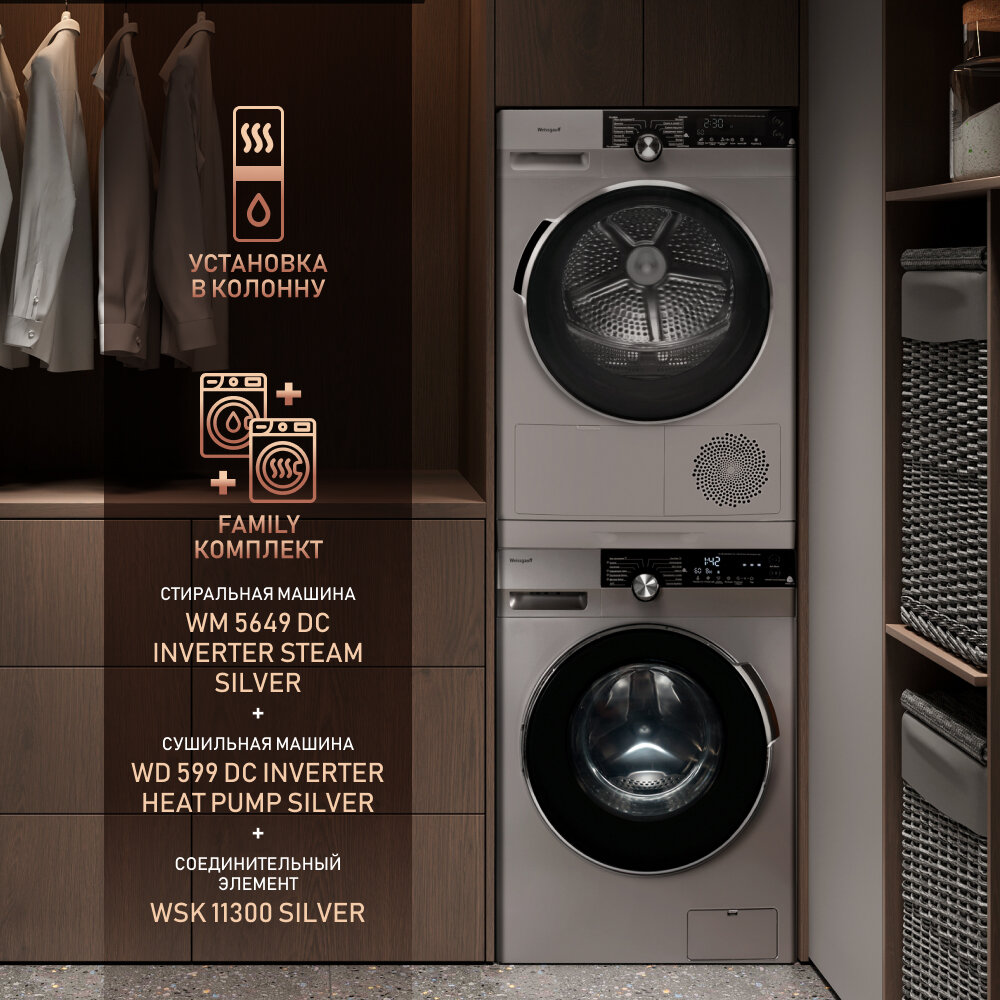 Стиральная машина Weissgauff WM 5649 DC Inverter Steam Silver интересное: