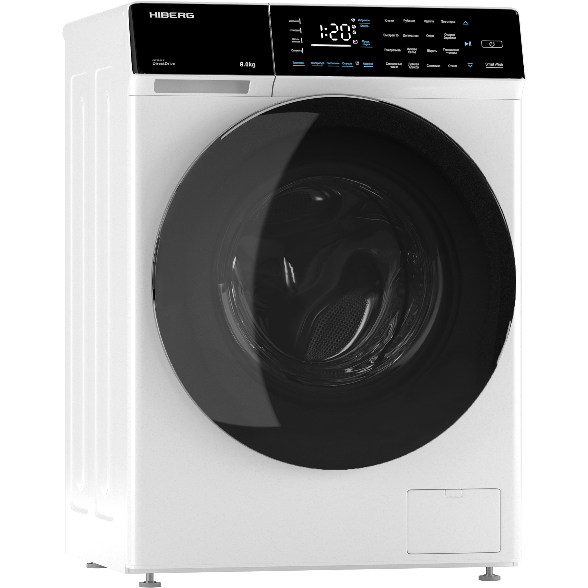 Стиральная машина HIBERG i-DDQ9 - 812 W, инверторная, 8 кг загрузка, 1200 об/мин, 16 программ, Smart wash, таймер, белый