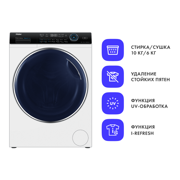 Стиральная машина автомат с сушкой Haier HWD100-B14979 с паром, фронтальная загрузка 10 кг 1400 оборотов, 14 программ стирки, белый