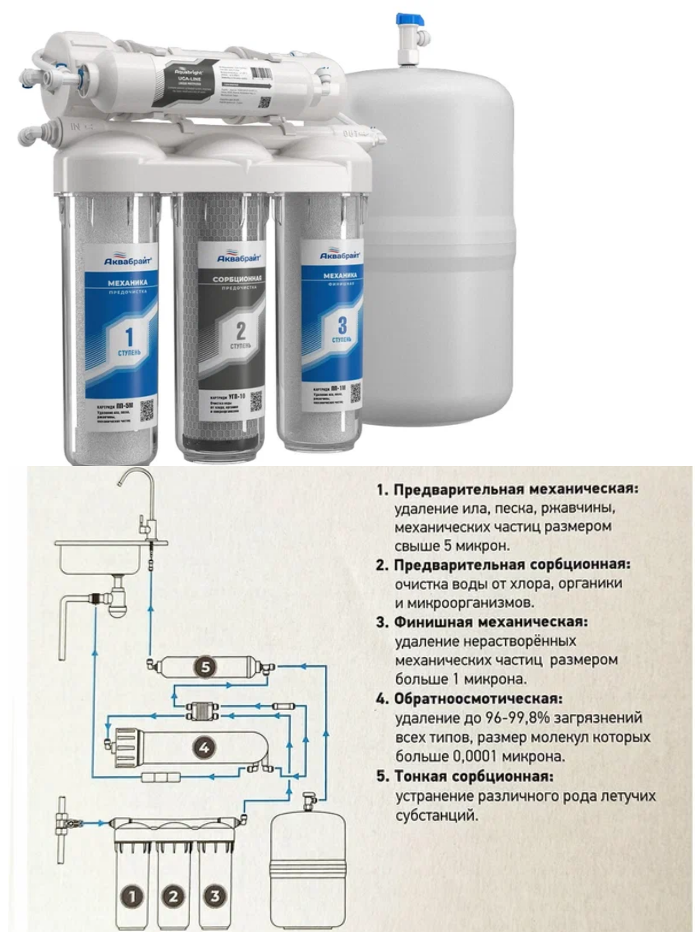 Система обратного осмоса 5 ступеней очистки АБФ-ОСМО-5 аквабрайт