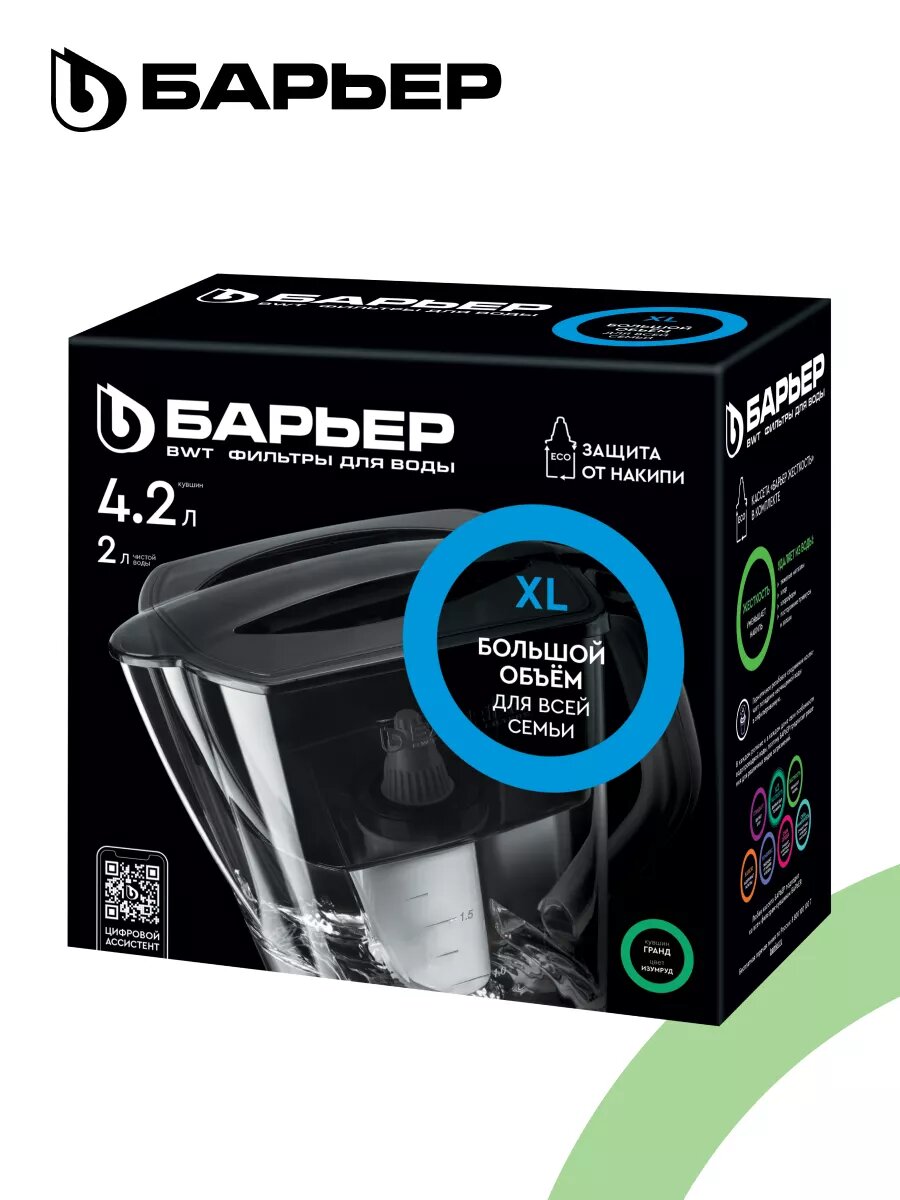 Фильтр для воды барьер гранд изумруд, зеленый, 4.2л (Г‚882Гђ00)