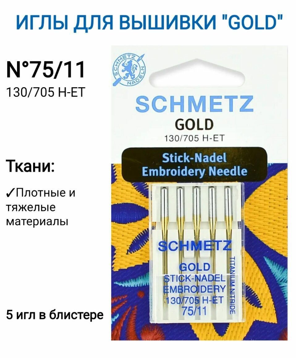 Иглы вышивальные GOLD Schmetz 130/705 Н-ET №75, 5 шт в блистере