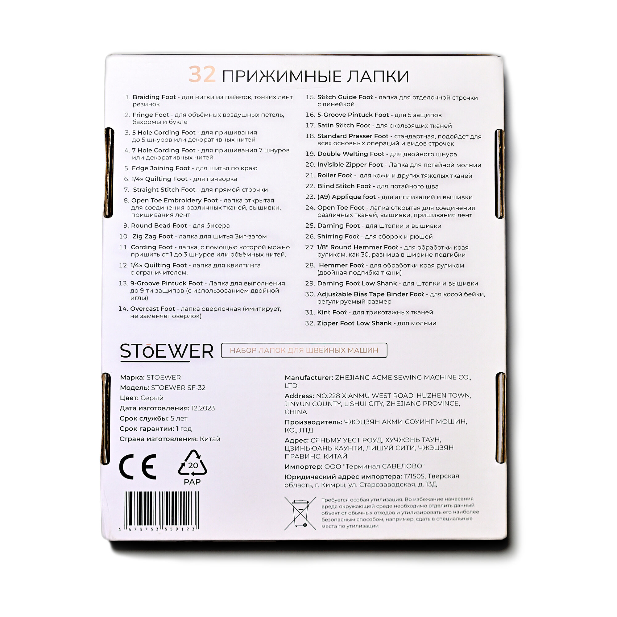 Набор из 32 швейных лапок для бытовых швейных машин STOEWER штоер