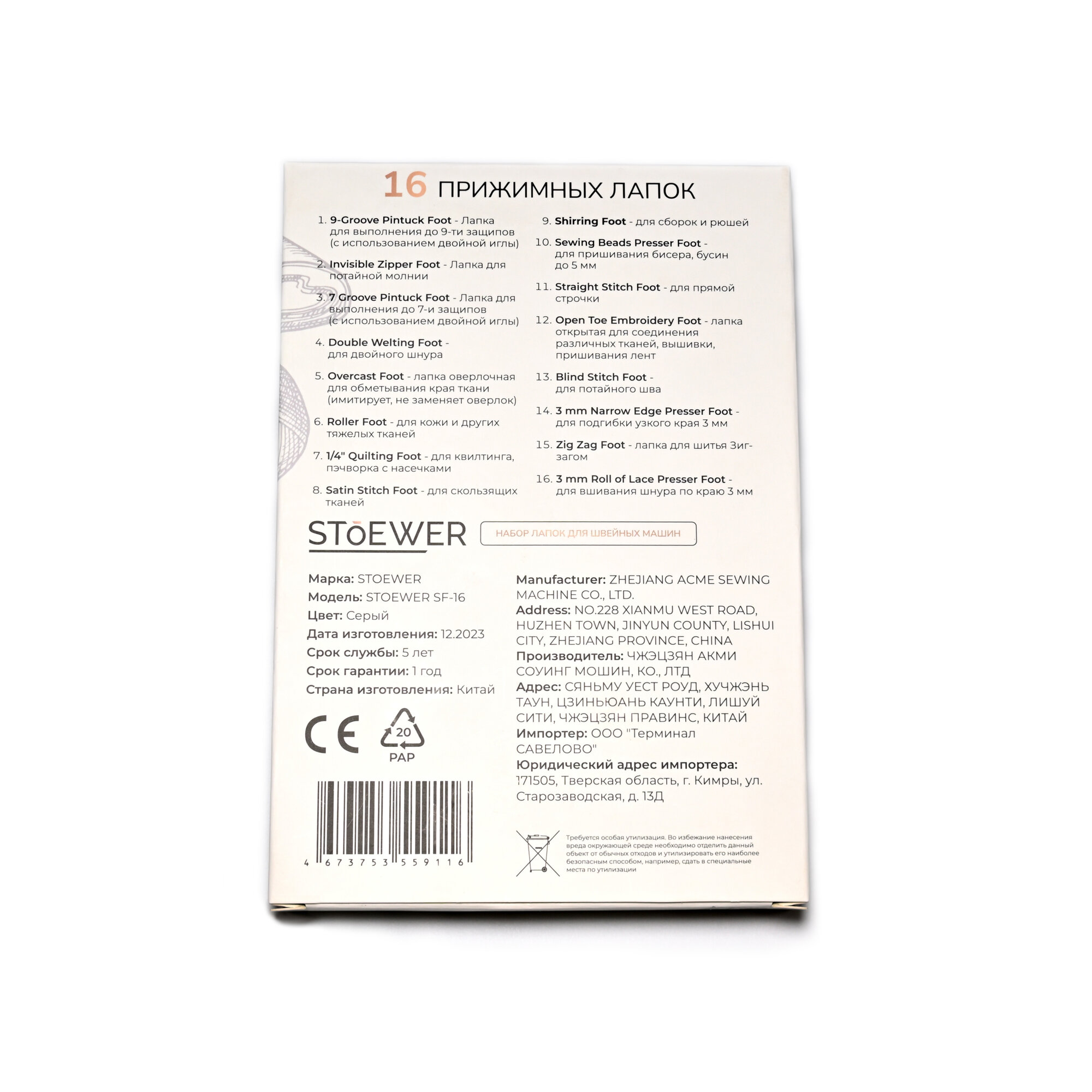 Набор из 16 швейных лапок для бытовых швейных машин STOEWER штоер
