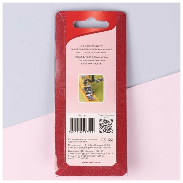 Лапка для шв.маш. Aurora AU-141 для молнии, односторонняя (в блистере) интересное: