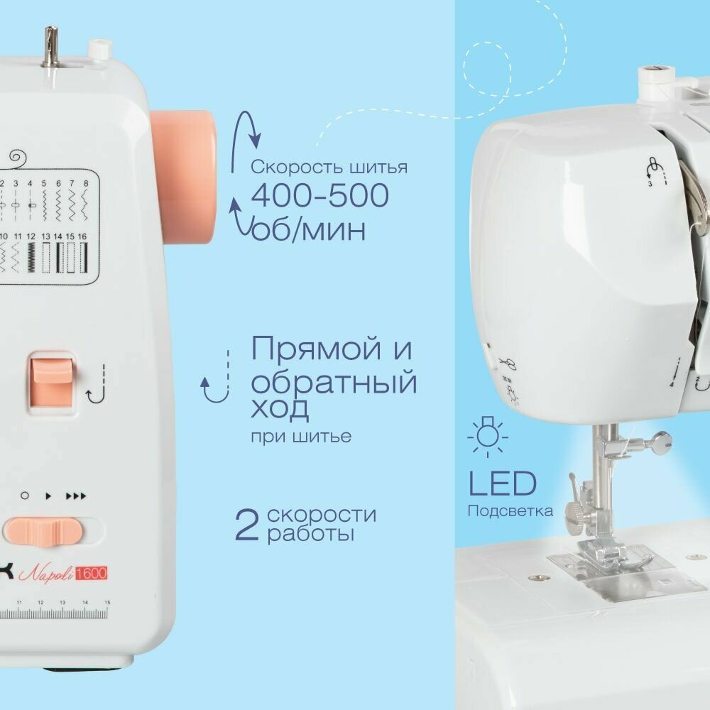 Швейная машина Napoli 1600, 16 операций, полуавтомат, белая