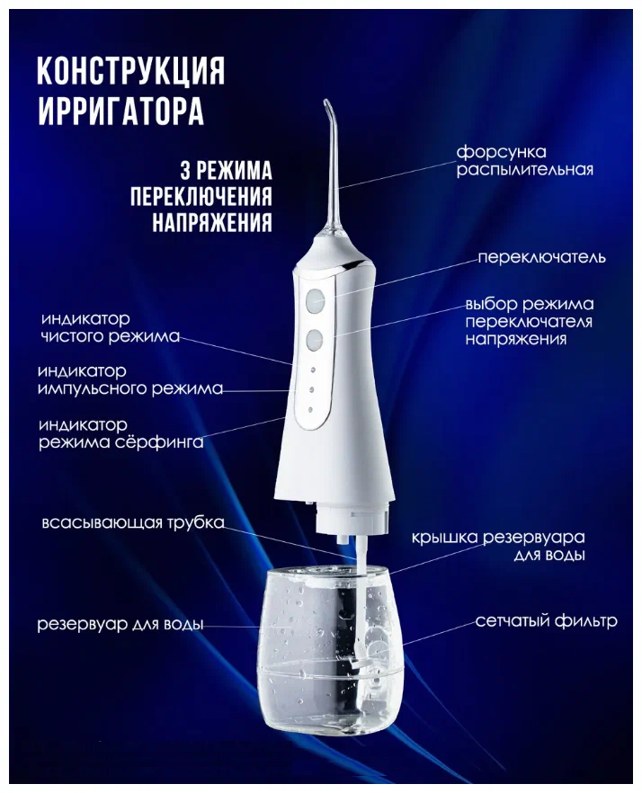 Ирригатор для полости рта/портативный ирригатор/для брекетов/ для зубов/для десен. интересное: