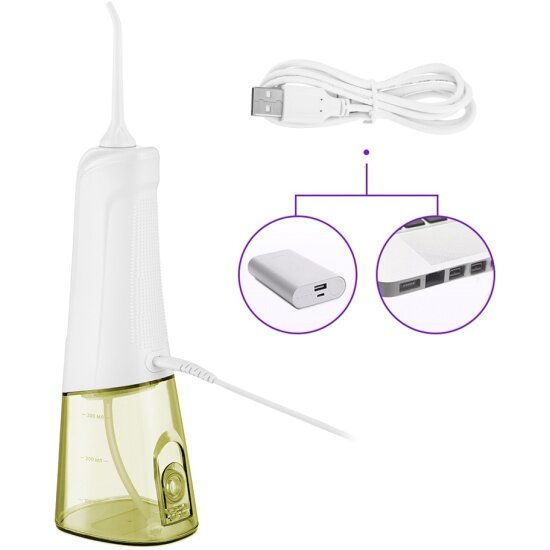 | Подробная комплектация | Комплектация 1. Ирригатор: • Струйная насадка — 2 шт. • Резервуар для воды — 1 шт. • USB-шнур с нестандартным разъемом — 1 шт. 2. Чехол — 1 шт. |