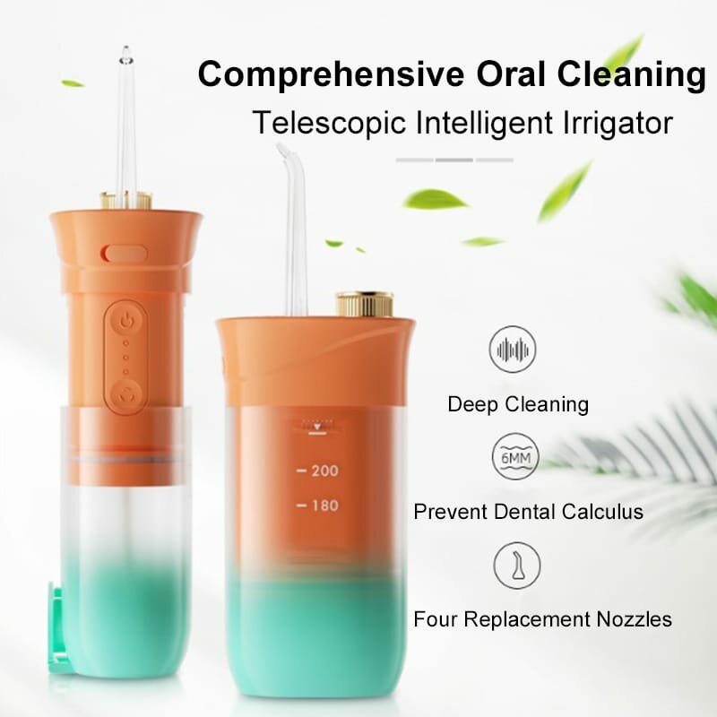 Купить Ирригатор, ирригатор для зубов, ирригатор для полости рта, 3 режима, зарядка USB, 4 насадки в комплекте, оранжевый