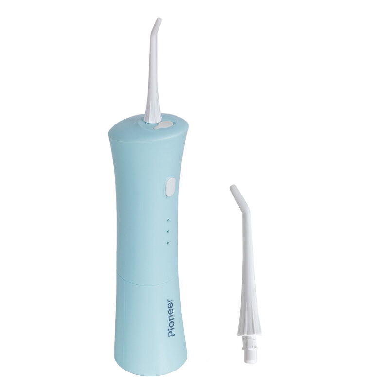 "Беспроводной портативный ирригатор Pioneer c 2 струйными насадками, индикацией и USB-кабелем, 3 режима, 1800 мАч"
