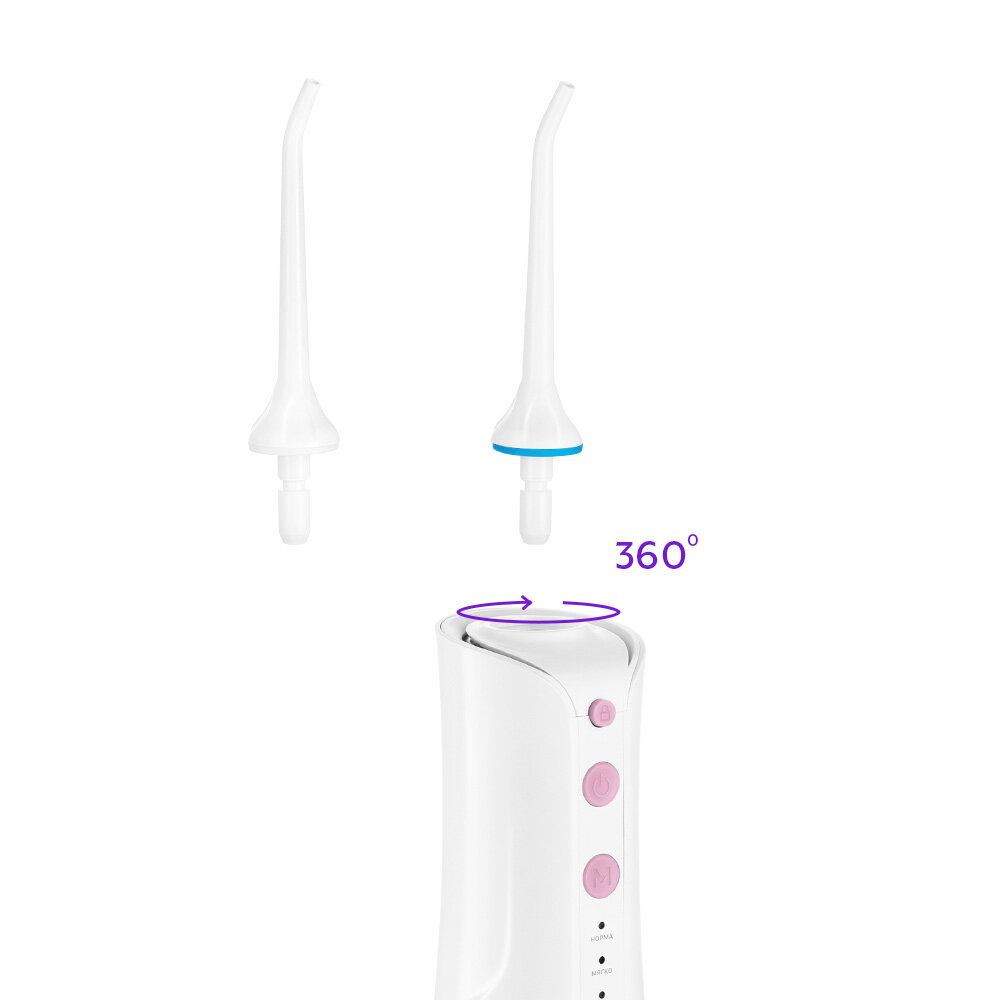 | Подробная комплектация | Комплектация 1. Ирригатор –– 1 шт. 2. Резервуар для воды –– 1 шт. 3. База для зарядки –– 1 шт. 4. USB-шнур – 1 шт. 5. Струйная насадка –– 2 шт. 6. Руководство по эксплуатации — 1 шт. 7. Коллекционный магнит — 1 шт.* *опционально |