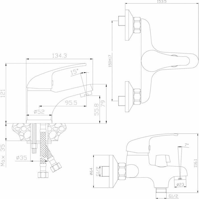 | Управление смесителем | рычажное |
