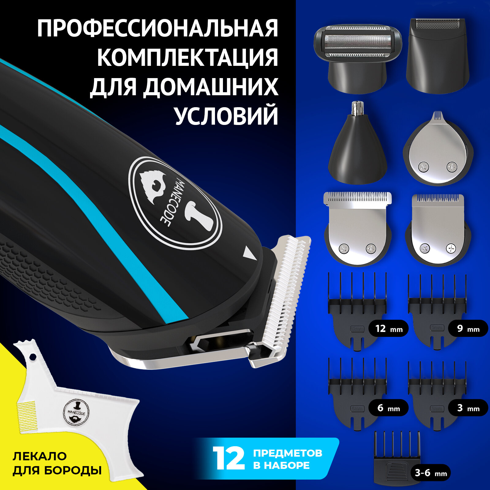 Триммер Manecode 11 в 1 для бороды, усов, носа, ушей и тела - Машинка для стрижки волос с самозатачивающимися лезвиями +Трафарет для бороды в подарок интересное: