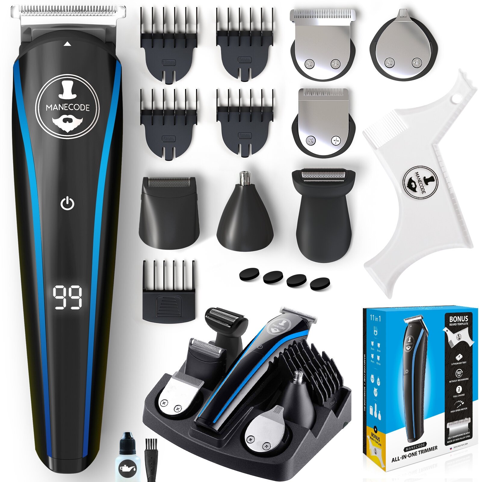 Купить Триммер Manecode 11 в 1 для бороды, усов, носа, ушей и тела - Машинка для стрижки волос с самозатачивающимися лезвиями +Трафарет для бороды в подарок