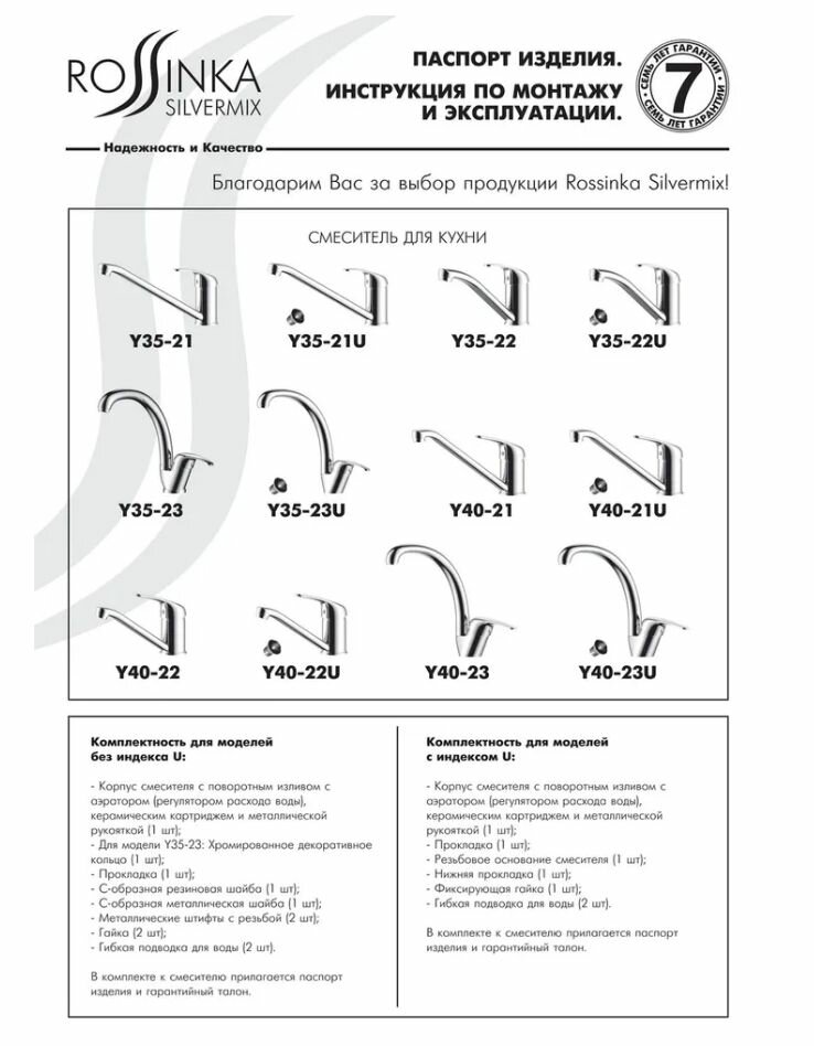 Rossinka Смеситель Y35-23u для кухни Y35-23u .