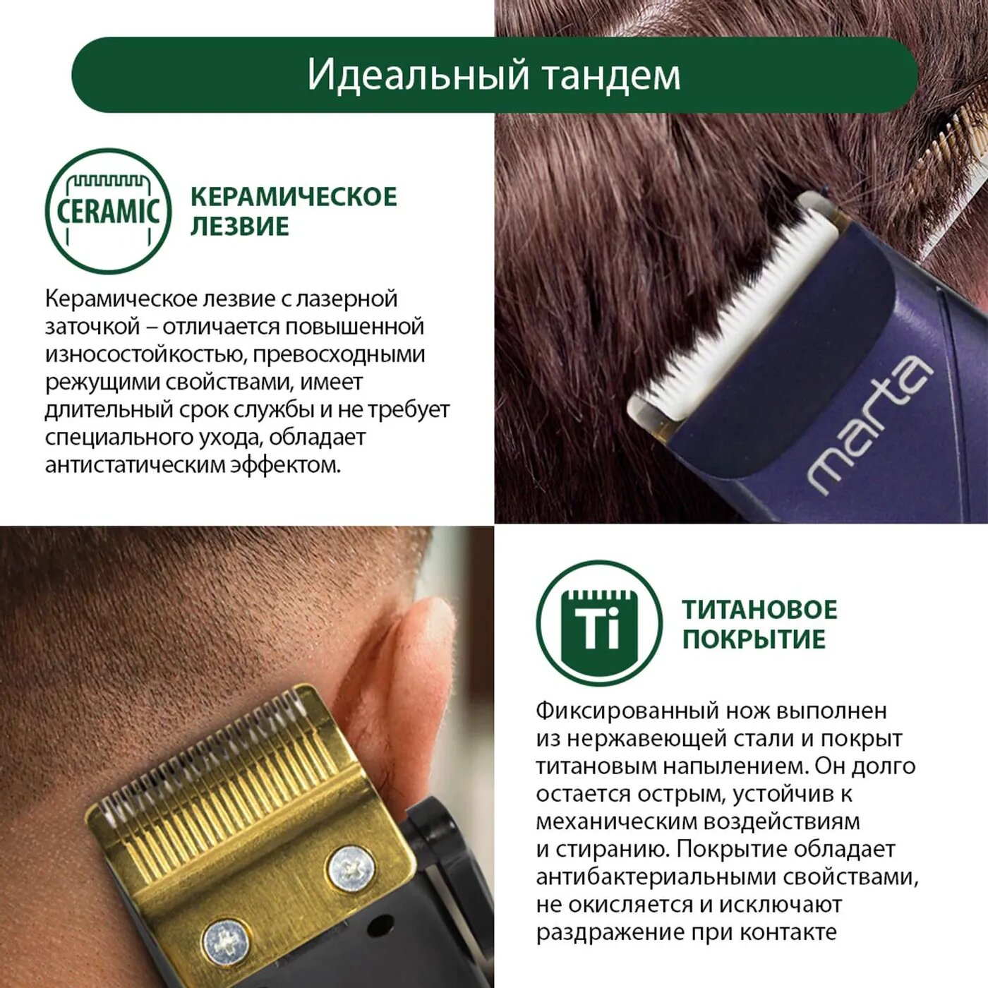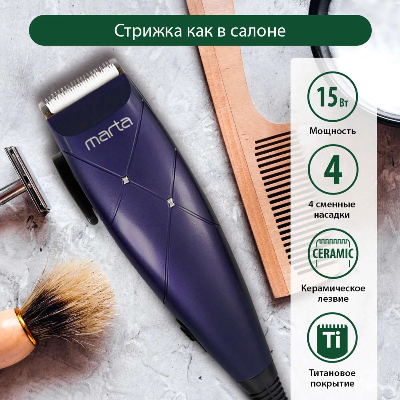 Машинка для стрижки MARTA MT-2220, лезвия титан, керамические, 4 настройки длины, черный