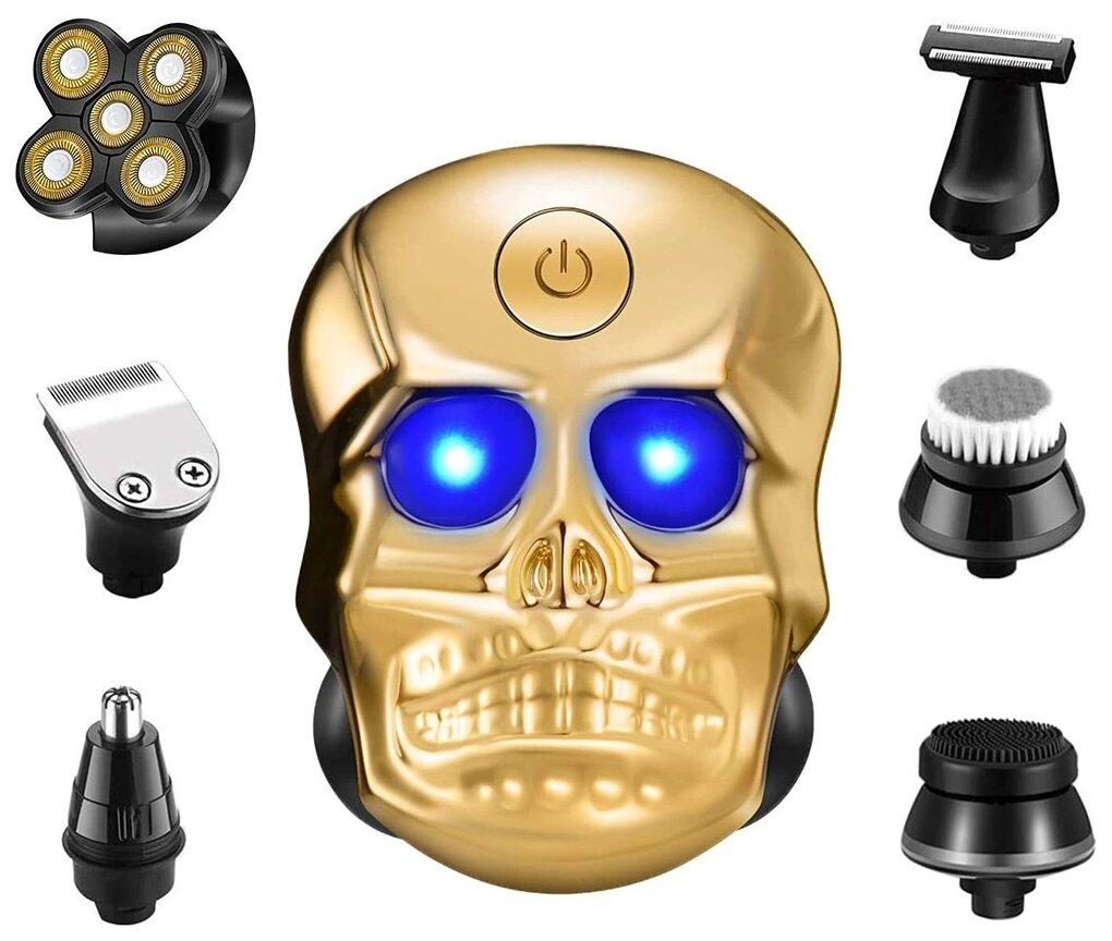 Машинка для бритья головы ZDK LK9800 "Череп" 6 насадок, золотой