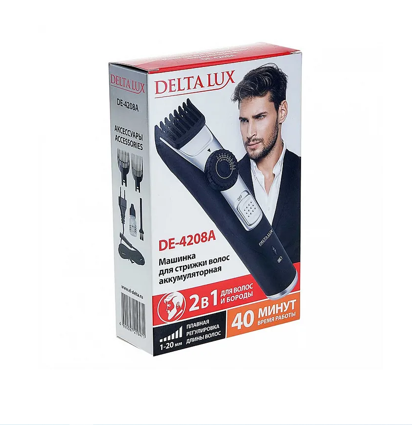 Машинка для стрижки 2 в 1 DELTA LUX DE-4208A для волос и бороды, регулировка 1-20мм, черный (24)