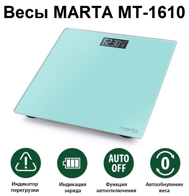 MARTA MT-1610 голубой аквамарин весы напольные сенсор