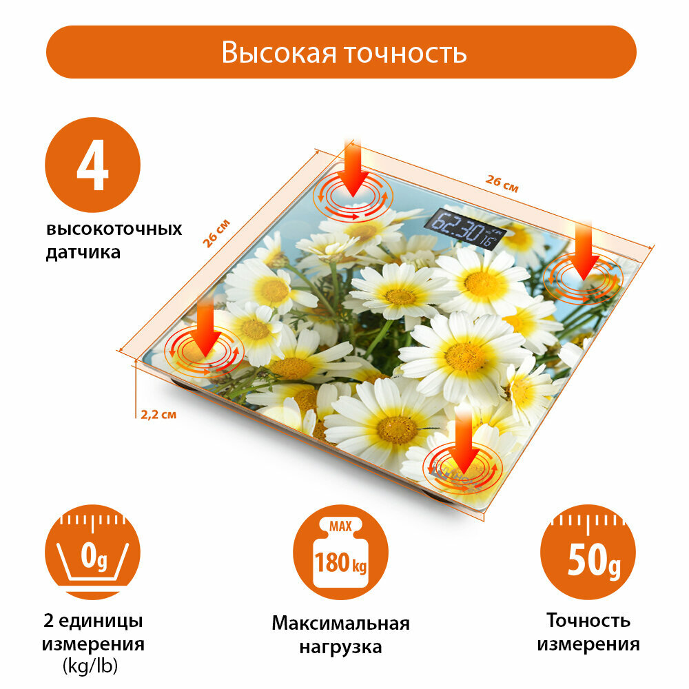 Купить HOME ELEMENT HE-SC906 ромашковое поле весы напольные сенсор, встроенный термометр