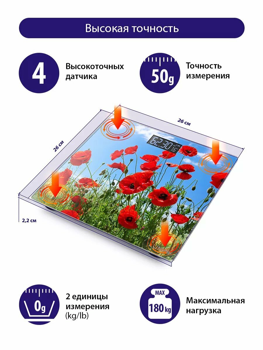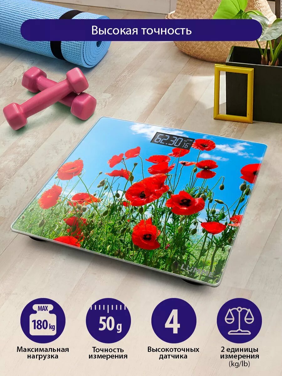 Весы напольные LUMME LU-1328 красные маки интересное: