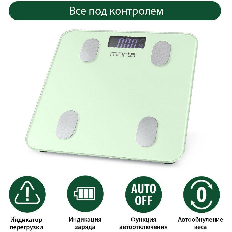Купить Весы напольные MARTA MT-1683 зеленый нефрит LCD диагностические, умные с Bluetooth