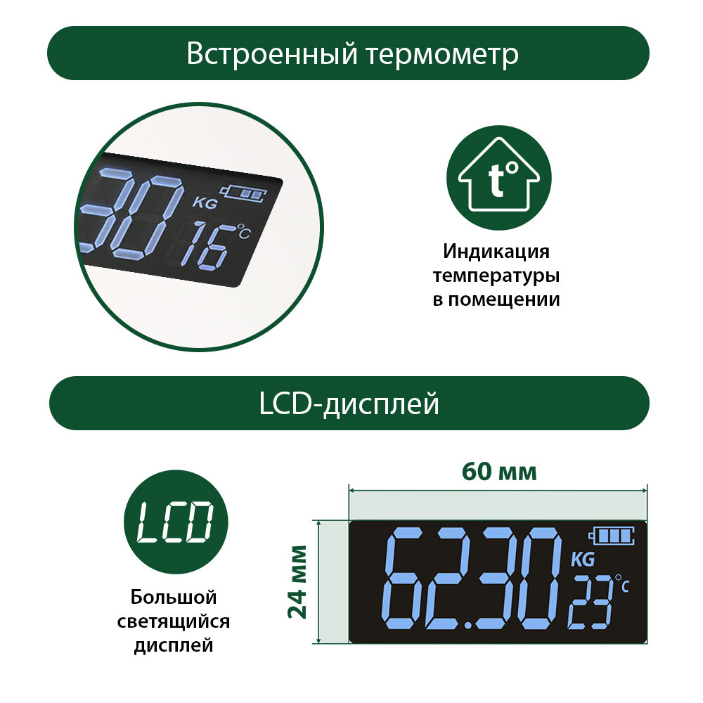 | Дополнительная информация | единицы измерения - кг/фунты/стоуны; индикация заряда батареи |