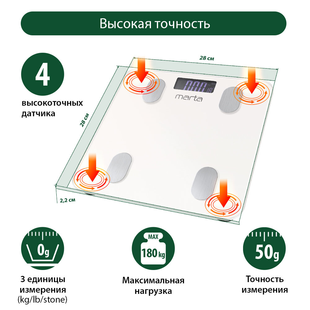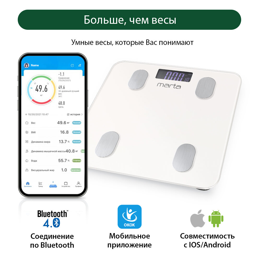 Умные весы MARTA MT-1683, Bluetooth, память на 8 пользователей