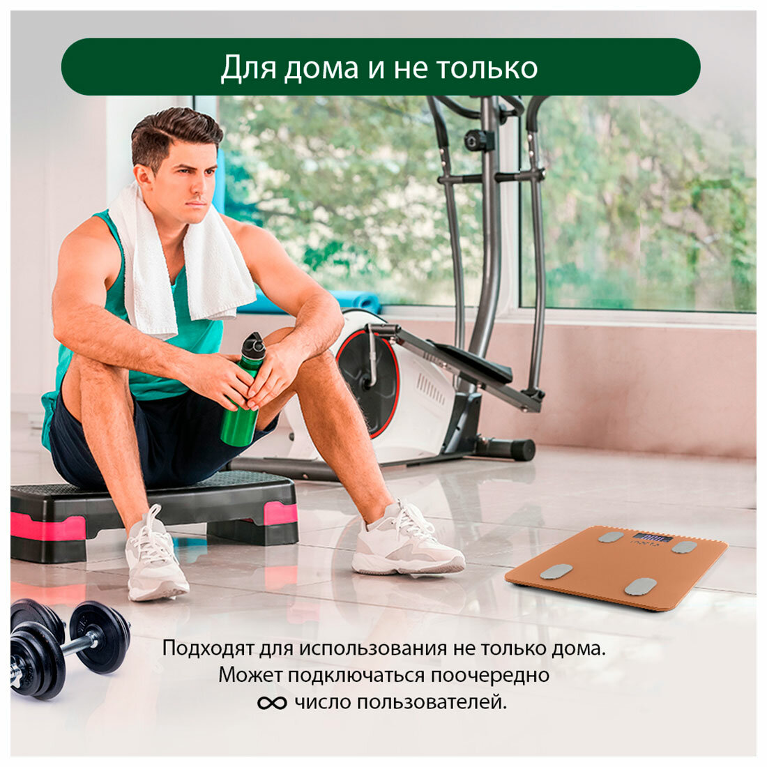 | Дополнительные функции | определение доли жировой ткани / определение доли мышечной ткани / определение доли воды / определение доли костной ткани / расчет ИМТ (BMI) / постановка цели / память |