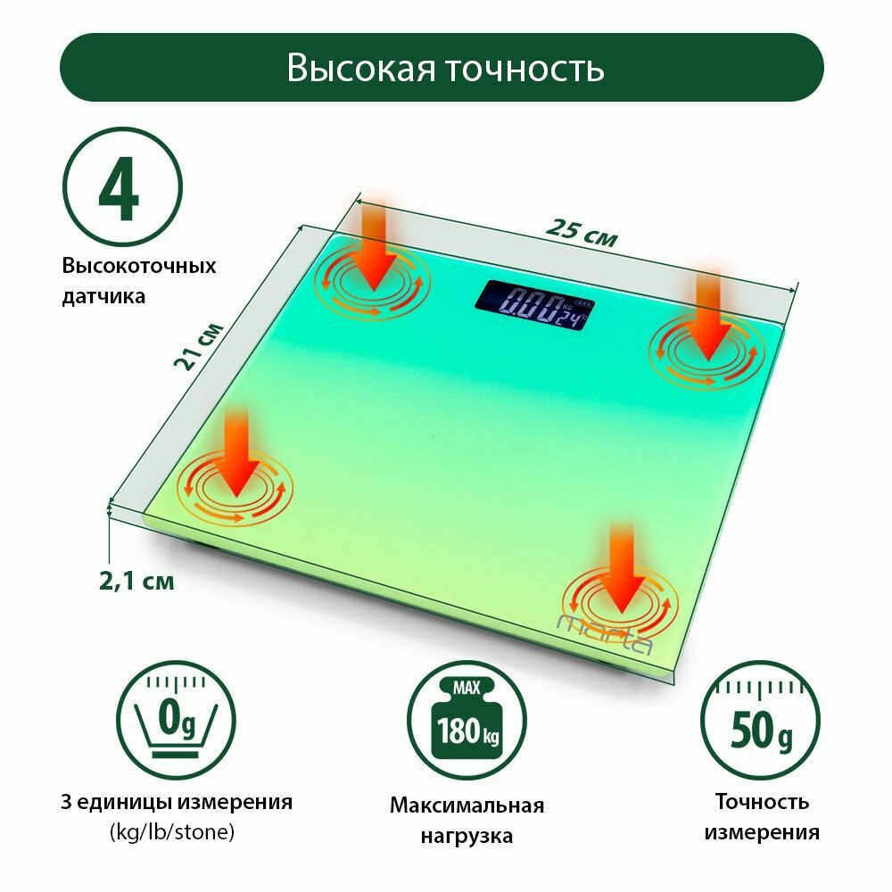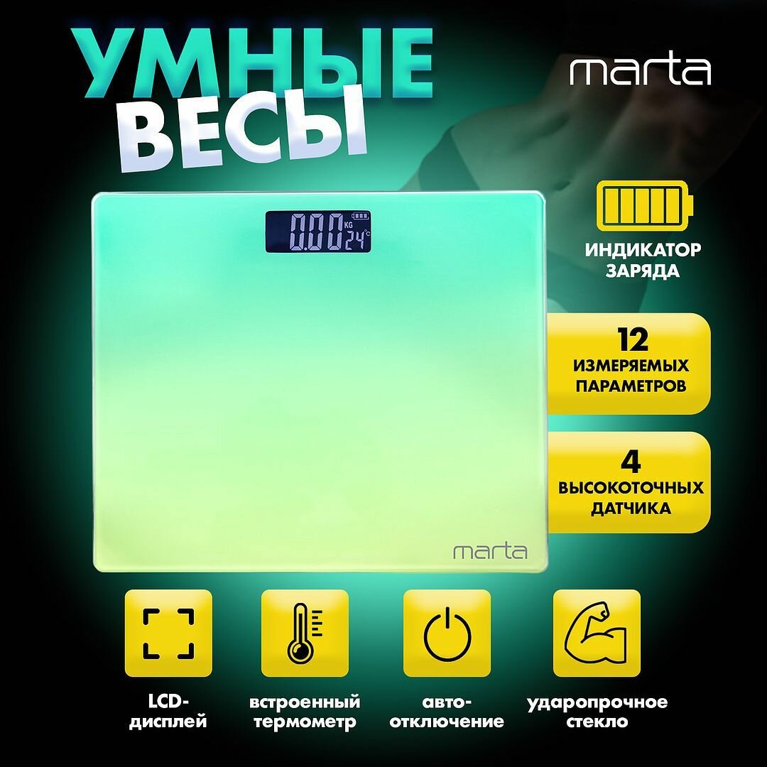 Купить MARTA MT-SC1691 желто-зеленый LCD весы напольные диагностические, умные с Bluetooth