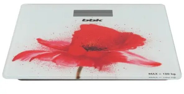 Весы напольные BBK BCS3003G белый/красный, LCD-дисплей, максимальный вес 180 кг, точность измерения 100 г, автоматическое отключение