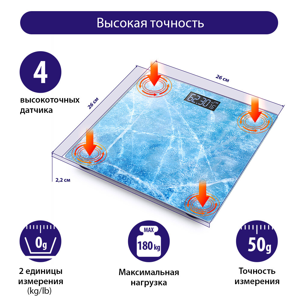 Весы LUMME LU-1328, стеклянные, голубые, электронные, с рисунком, до 180кг