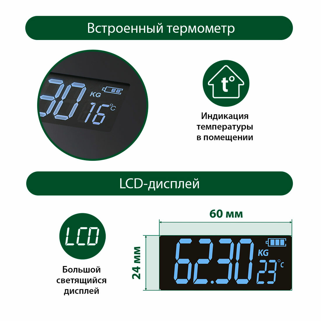 | Дополнительная информация | единицы измерения - кг/фунты/стоуны; индикация заряда батареи |