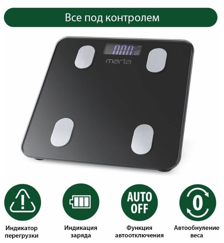 Весы напольные Marta MT-1683 черный жемчуг стекло, 28*28 см, 4 сенсора, ЖК диспл, память на 8 чел, и . интересное:
