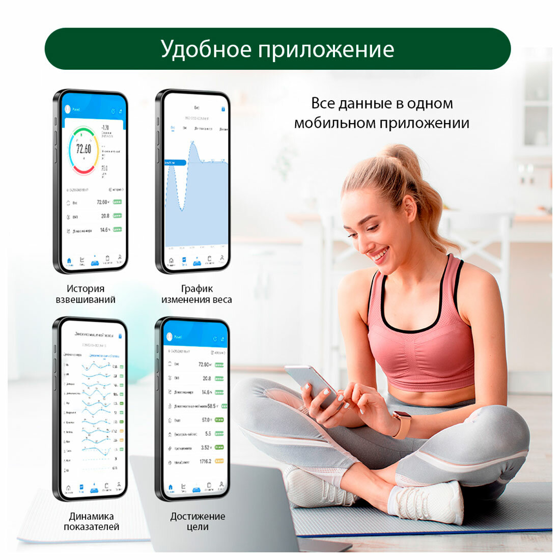 | Дополнительные функции | определение доли жировой ткани / определение доли мышечной ткани / определение доли воды / определение доли костной ткани / расчет ИМТ (BMI) / постановка цели / память |