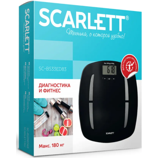 Весы напольные диагностические SCARLETT SC-BS33ED83, электронные, вес до 180 кг, пластик, черные