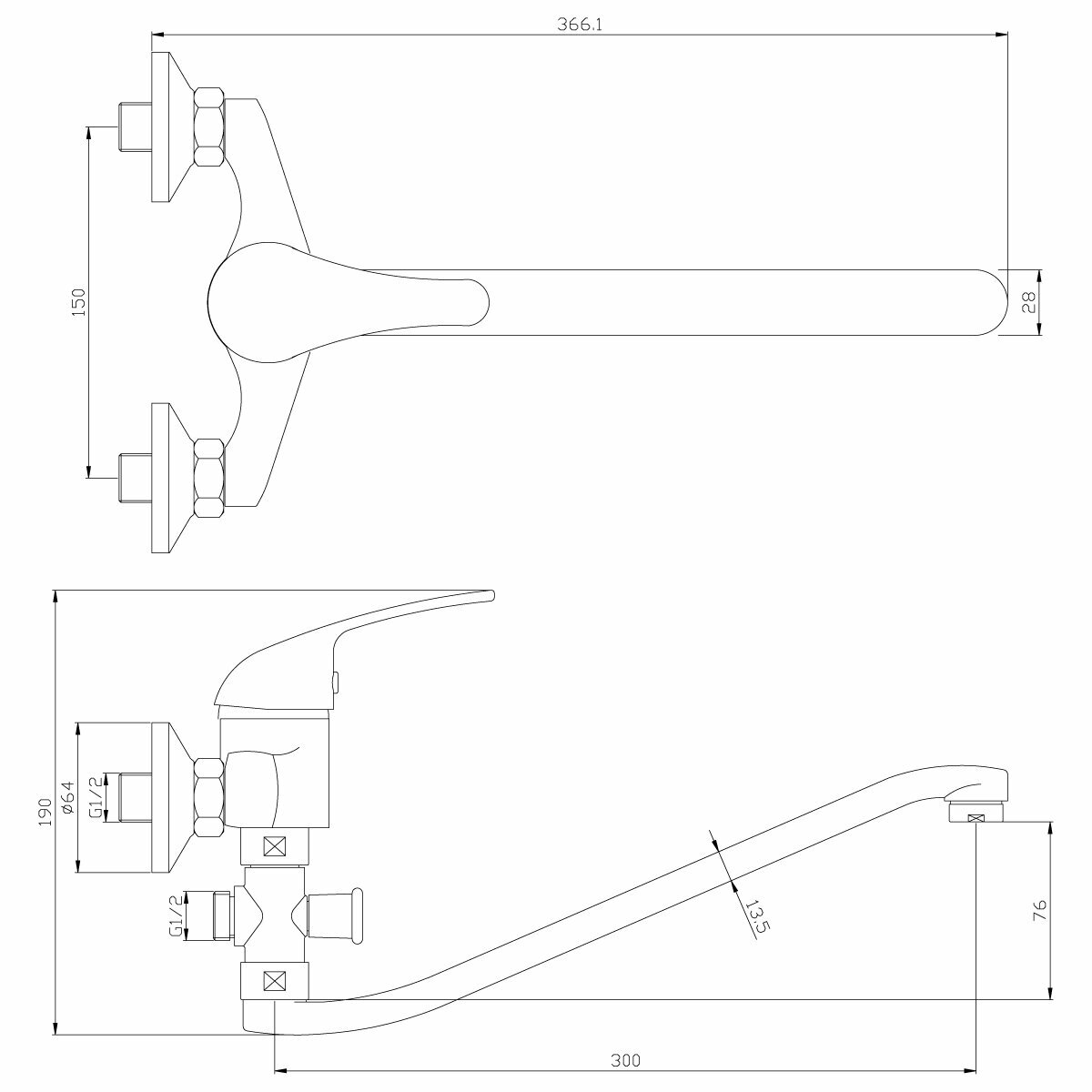 Смеситель Rossinka Y4035 в/д, моно, с плоским изливом 350 мм, хром .