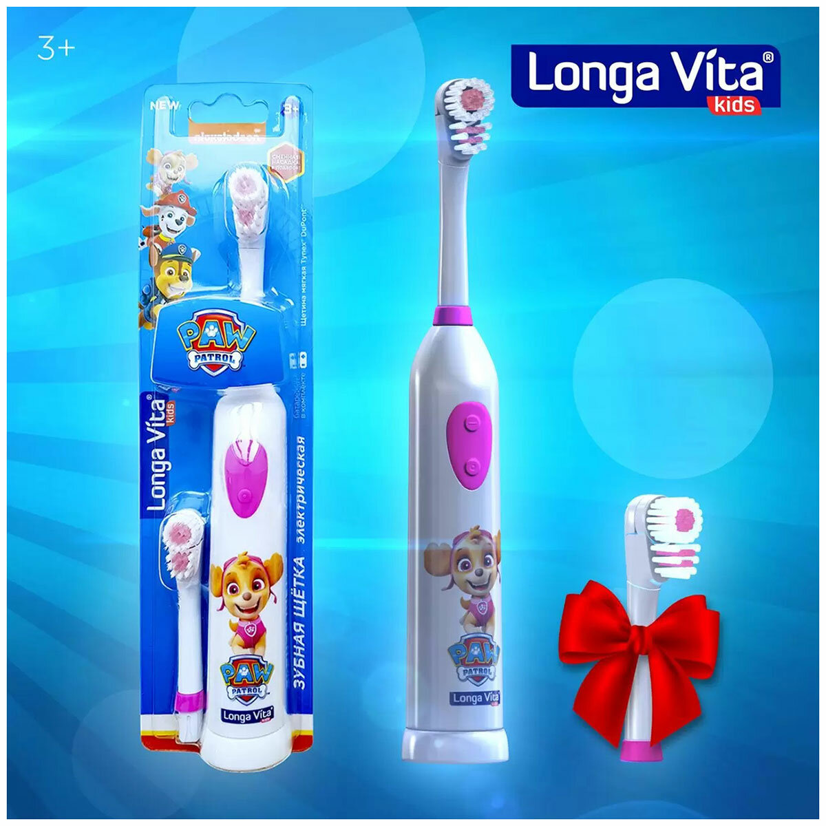 Longa Vita Детская зубная щетка ротационная + 2 сменных насадки Скай, Paw Patrol 3+, Longa vita