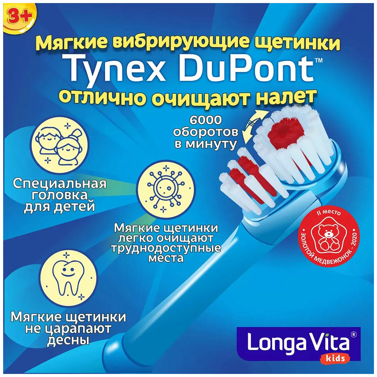 Детская электрическая зубная щётка Лонга Вита KAB-1B синяя интересное: