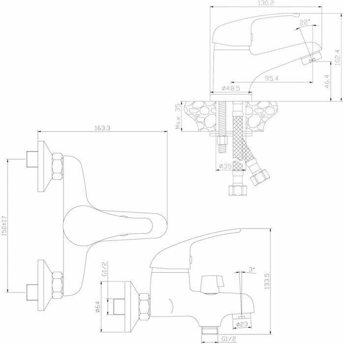 Смеситель для ванны Rossinka Y40-30 интересное: